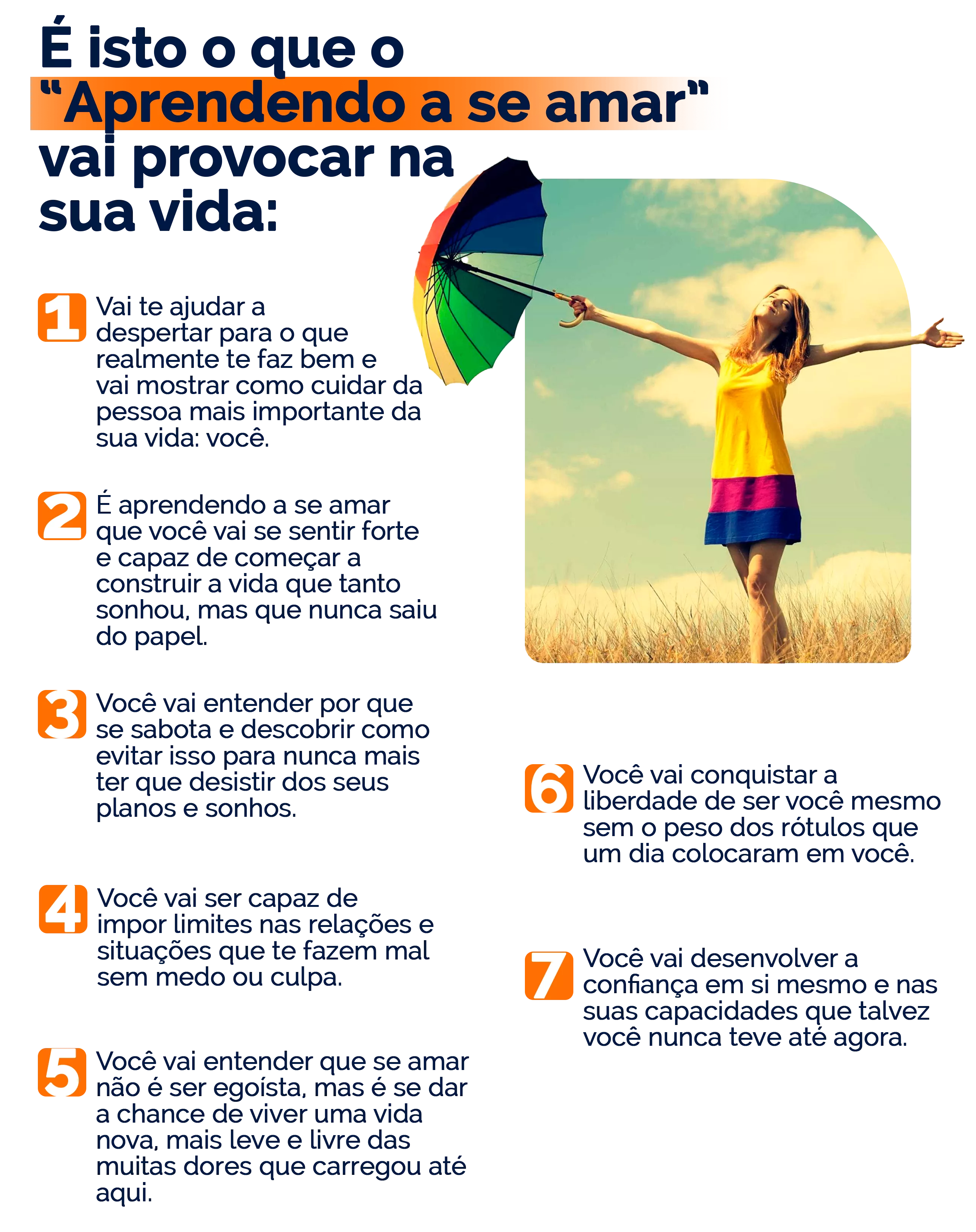 Dezenas de aulas gravadas que formam um caminho terapêutico transformador para destravar a sua vida, te mostrar como vencer a autossabotagem e construir o seu amor-próprio.